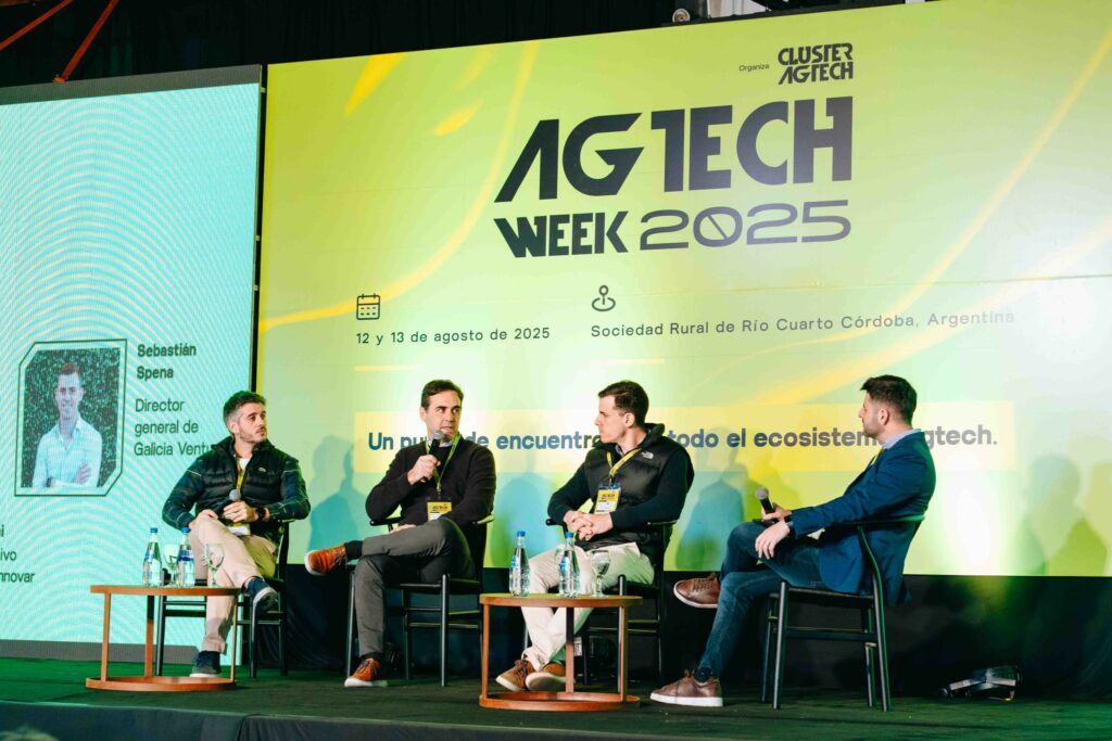 En ese marco, Sebastián Spena, Managing Director de Galicia Ventures, participó como speaker en un panel sobre Fondos de Inversión y Venture Capital, junto a Juan Martín Ninfea (Pampa Start) y Matías Peire (GRIDX), con la moderación de Gonzalo Valenci (Agencia Córdoba Innovar y Emprender). Durante la conversación se compartieron experiencias vinculadas al rol de la inversión de riesgo y al acompañamiento de startups que desarrollan soluciones tecnológicas para el sector agropecuario.